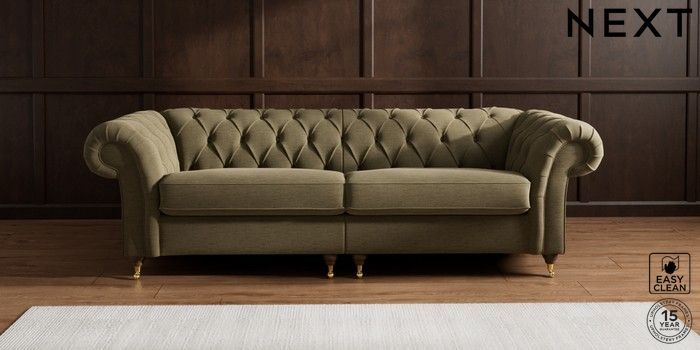 7.2.10 Gosford II Deep Sit 4 Seater Sofa Fine Chenille Easy Clean Dark Moss Green Castor - Mid | Made Click here to use our website with more accessibility support, for example screen readers