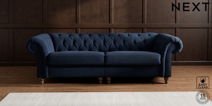7.2.10 Gosford II Deep Sit 4 Seater Sofa Fine Chenille Easy Clean Dark Navy Blue Low Turned - Mid | Made Click here to use our website with more accessibility support, for example screen readers