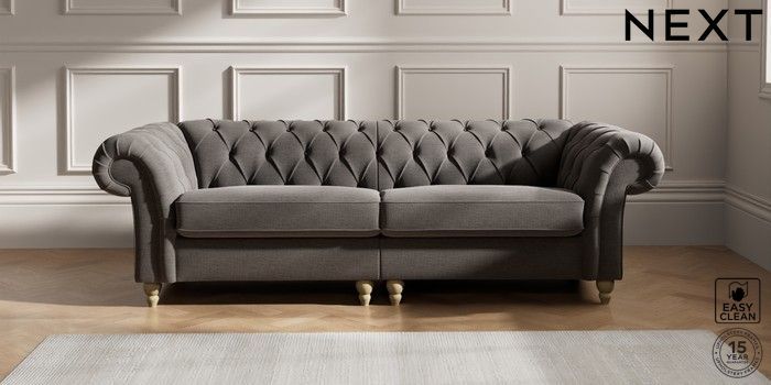 7.2.10 Gosford II Deep Sit 4 Seater Sofa Fine Chenille Easy Clean Dark Smoke Grey Low Turned - Light | Made Click here to use our website with more accessibility support, for example screen readers