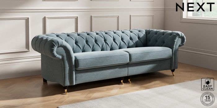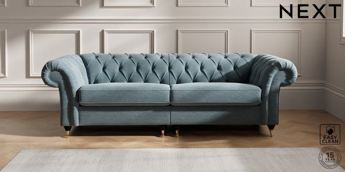 7.2.10 Gosford II Deep Sit 4 Seater Sofa Fine Chenille Easy Clean Mid Blue Castor - Dark | Made Click here to use our website with more accessibility support, for example screen readers