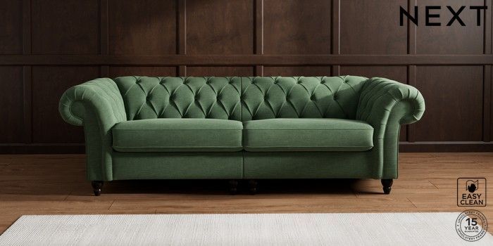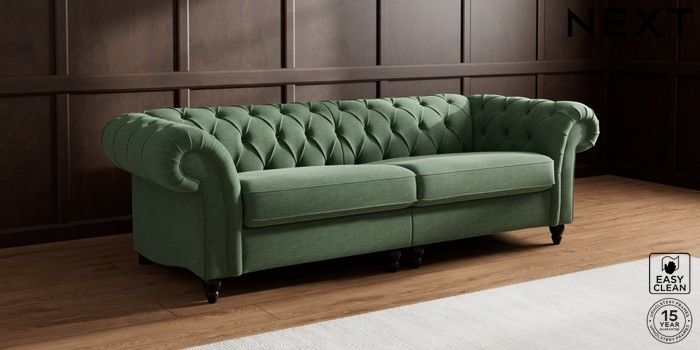 7.2.10 Gosford II Deep Sit 4 Seater Sofa Fine Chenille Easy Clean Mid Khaki Green Low Turned - Dark | Made Click here to use our website with more accessibility support, for example screen readers