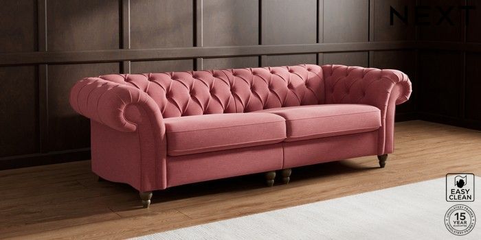 7.2.10 Gosford II Deep Sit 4 Seater Sofa Fine Chenille Easy Clean Mid Pink Low Turned - Mid | Made Click here to use our website with more accessibility support, for example screen readers