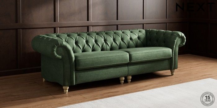 7.2.10 Gosford II Deep Sit 4 Seater Sofa Luxe Chenille Dark Green Low Turned - Light | Made Click here to use our website with more accessibility support, for example screen readers