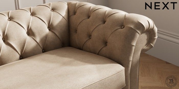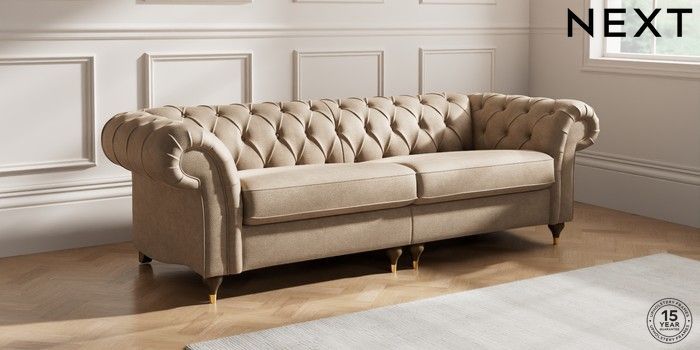 7.2.10 Gosford II Deep Sit 4 Seater Sofa Luxe Chenille Mid Camel Beige Modern Turned Metal Cap - Mid | Made Click here to use our website with more accessibility support, for example screen readers