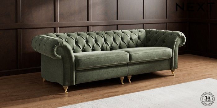 7.2.10 Gosford II Deep Sit 4 Seater Sofa Luxe Chenille Mid Green Castor - Light | Made Click here to use our website with more accessibility support, for example screen readers