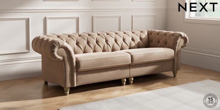7.2.10 Gosford II Deep Sit 4 Seater Sofa Luxe Chenille Mid Natural Low Turned - Light | Made Click here to use our website with more accessibility support, for example screen readers