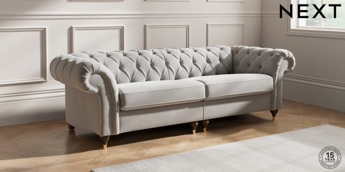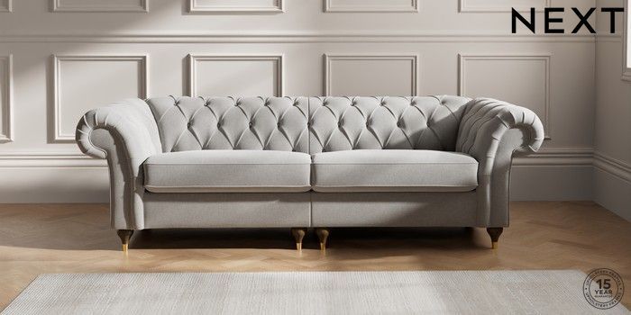 7.2.10 Gosford II Deep Sit 4 Seater Sofa Natural Mix Light Grey Modern Turned Metal Cap - Mid | Made Click here to use our website with more accessibility support, for example screen readers