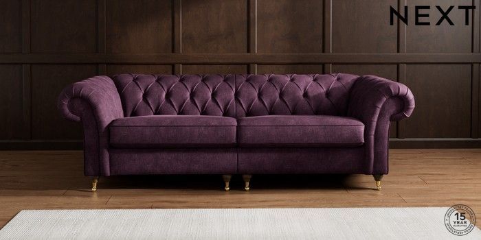 7.2.10 Gosford II Deep Sit 4 Seater Sofa Plush Chenille Dark Plum Purple Castor - Mid | Made Click here to use our website with more accessibility support, for example screen readers