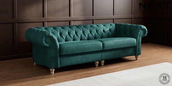 7.2.10 Gosford II Deep Sit 4 Seater Sofa Plush Chenille Dark Teal Green Low Turned - Light | Made Click here to use our website with more accessibility support, for example screen readers
