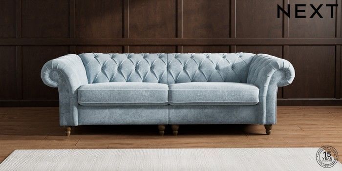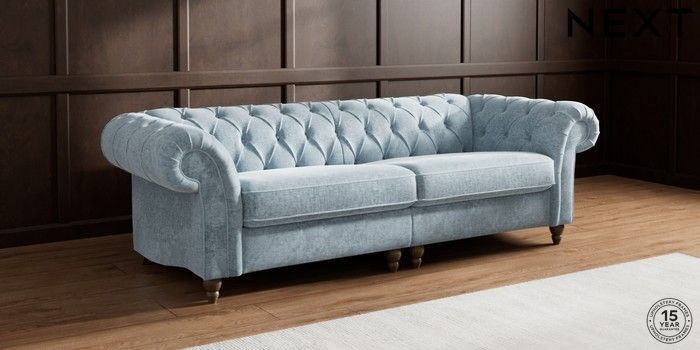 7.2.10 Gosford II Deep Sit 4 Seater Sofa Plush Chenille Light Blue Low Turned - Mid | Made Click here to use our website with more accessibility support, for example screen readers