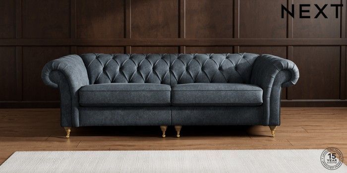7.2.10 Gosford II Deep Sit 4 Seater Sofa Plush Chenille Slate Blue Castor - Light | Made Click here to use our website with more accessibility support, for example screen readers