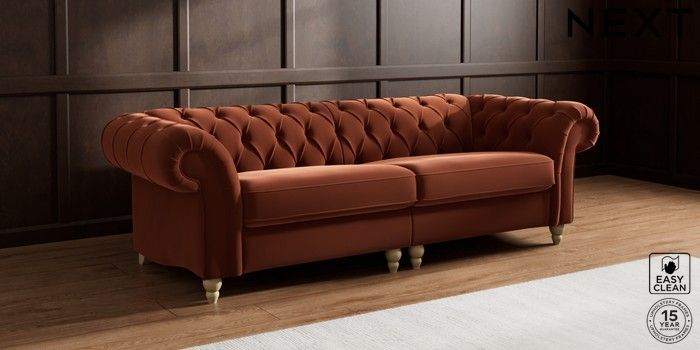 7.2.10 Gosford II Deep Sit 4 Seater Sofa Plush Velvet Easy Clean Ginger Orange Low Turned - Light | Made Click here to use our website with more accessibility support, for example screen readers