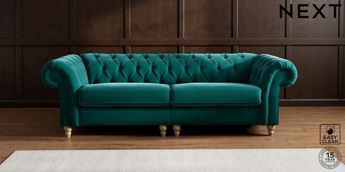 7.2.10 Gosford II Deep Sit 4 Seater Sofa Plush Velvet Easy Clean Juniper Green Low Turned - Light | Made Click here to use our website with more accessibility support, for example screen readers