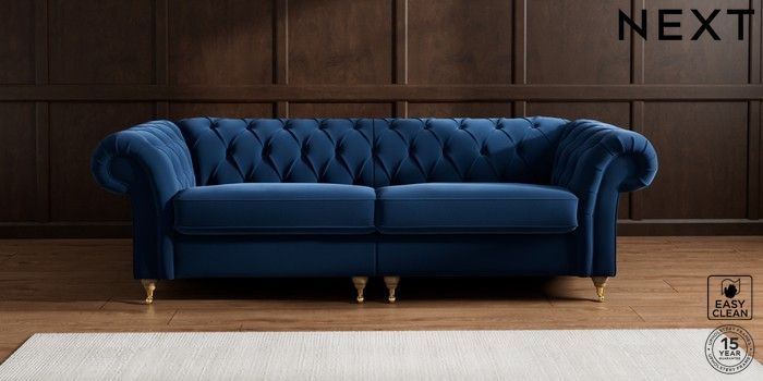 7.2.10 Gosford II Deep Sit 4 Seater Sofa Plush Velvet Easy Clean Navy Blue Castor - Light | Made Click here to use our website with more accessibility support, for example screen readers