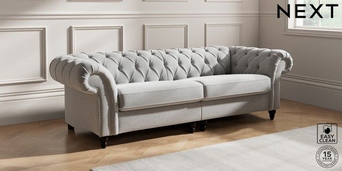 7.2.10 Gosford II Deep Sit 4 Seater Sofa Tweedy Blend Easy Clean Light Silver Grey Low Turned - Dark | Made Click here to use our website with more accessibility support, for example screen readers