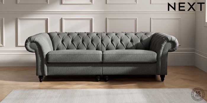 7.2.10 Gosford II Deep Sit 4 Seater Sofa Tweedy Chenille Dark Grey Low Turned - Dark | Made Click here to use our website with more accessibility support, for example screen readers