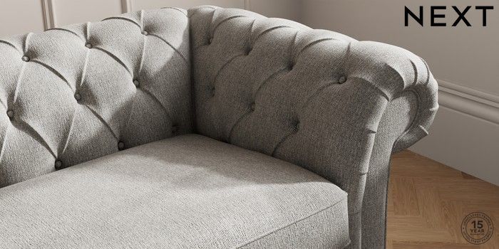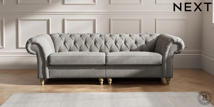 7.2.10 Gosford II Deep Sit 4 Seater Sofa Tweedy Chenille Mid Grey Low Turned - Light | Made Click here to use our website with more accessibility support, for example screen readers