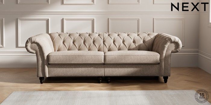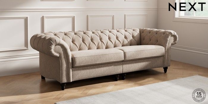 7.2.10 Gosford II Deep Sit 4 Seater Sofa Tweedy Chenille Mid Natural Low Turned - Dark | Made Click here to use our website with more accessibility support, for example screen readers
