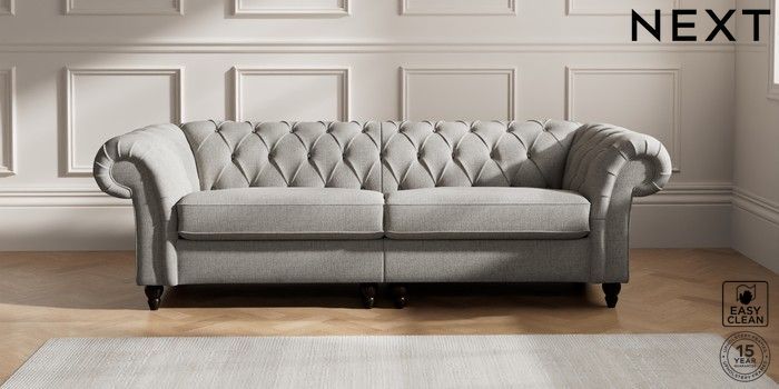 7.2.10 Gosford II Deep Sit 4 Seater Sofa Woven Chenille Easy Clean Light Grey Low Turned - Dark | Made Click here to use our website with more accessibility support, for example screen readers
