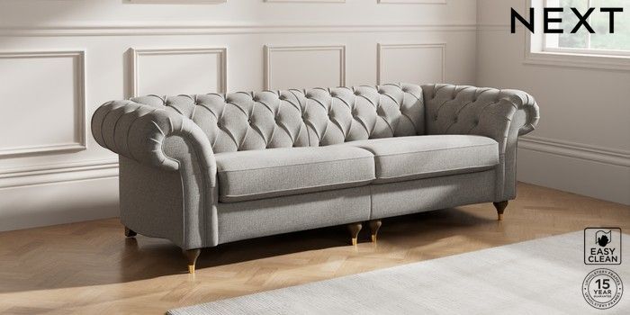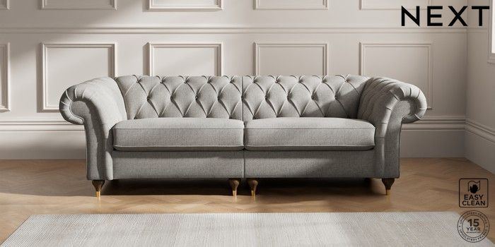 7.2.10 Gosford II Deep Sit 4 Seater Sofa Woven Chenille Easy Clean Light Grey Modern Turned Metal Cap - Mid | Made Click here to use our website with more accessibility support, for example screen readers