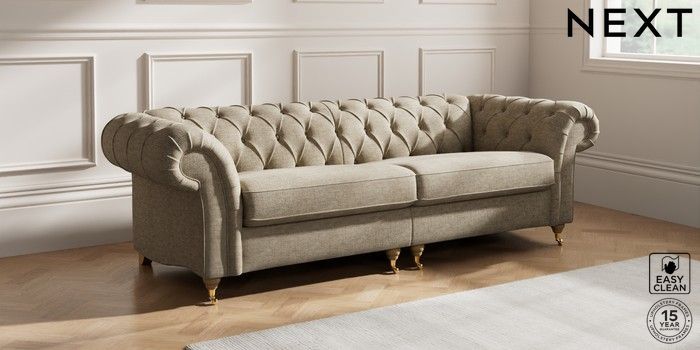 Bring timeless charm and comfort into your home with the Gosford Chesterfield. This sofa boasts stunning hand-crafted deep buttoning and is built for lasting support. Its unique "Firmer Sit" seat cushions offer ultimate comfort and durability, always returning to their neat, tailored shape. These cushions are low-maintenance and reversible—just rotate and plump them regularly to keep them looking fresh. We've also added luxurious scatter cushions for extra cosiness. Personalise your Gosford by selecting from a wide array of fabrics and various feet options.