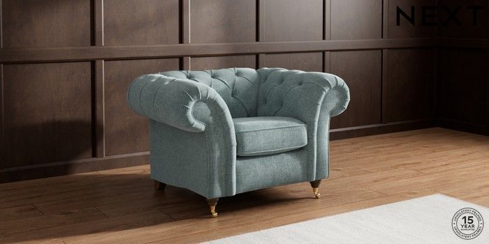 7.2.10 Gosford II Deep Sit Armchair Chunky Chenille Light Teal Green Castor - Mid | Made Click here to use our website with more accessibility support, for example screen readers