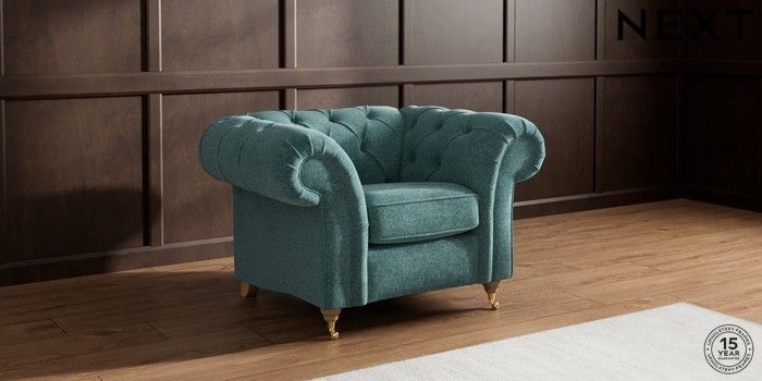 7.2.10 Gosford II Deep Sit Armchair Chunky Chenille Mid Teal Green Castor - Light | Made Click here to use our website with more accessibility support, for example screen readers
