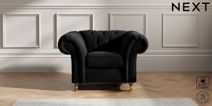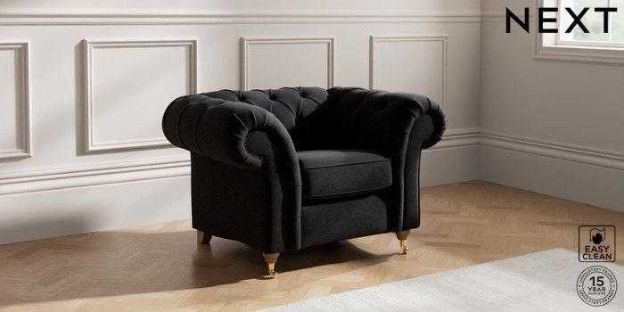 7.2.10 Gosford II Deep Sit Armchair Fine Chenille Easy Clean Black Castor - Light | Made Click here to use our website with more accessibility support, for example screen readers
