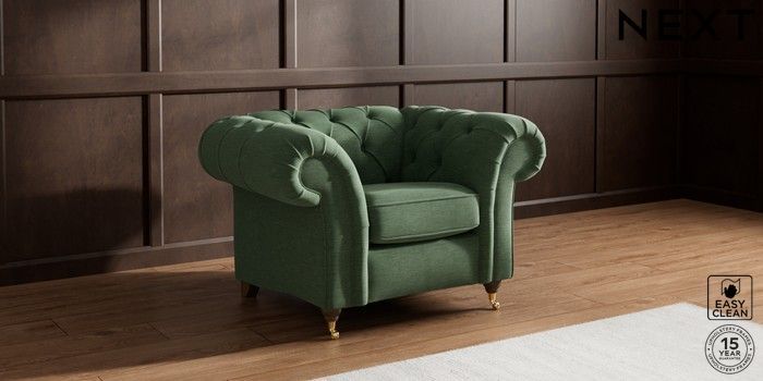 7.2.10 Gosford II Deep Sit Armchair Fine Chenille Easy Clean Mid Khaki Green Castor - Mid | Made Click here to use our website with more accessibility support, for example screen readers