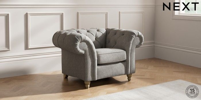 7.2.10 Gosford II Deep Sit Armchair Tweedy Chenille Mid Grey Low Turned - Light | Made Click here to use our website with more accessibility support, for example screen readers