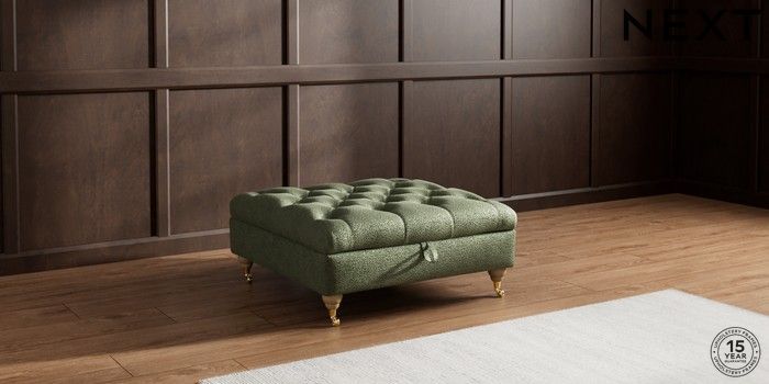 7.2.10 Gosford II Deep Sit Extra Large Storage Footstool Boucle Chenille Dark Moss Green Castor - Light | Made Click here to use our website with more accessibility support, for example screen readers