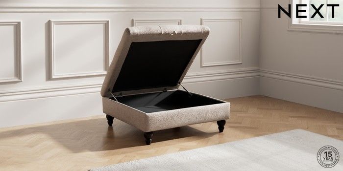 7.2.10 Gosford II Deep Sit Extra Large Storage Footstool Boucle Chenille Light Natural Low Turned - Dark | Made Click here to use our website with more accessibility support, for example screen readers