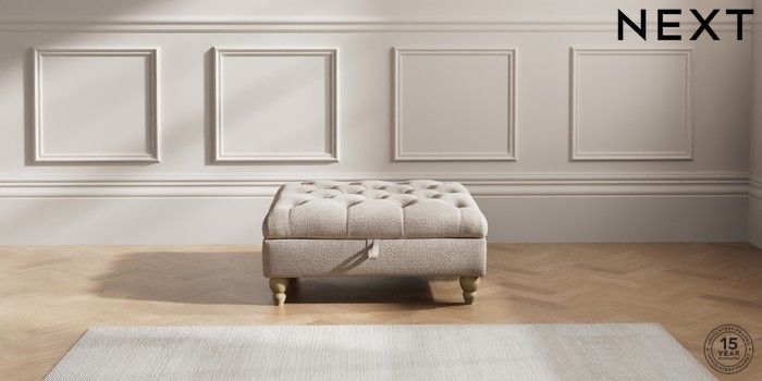 7.2.10 Gosford II Deep Sit Extra Large Storage Footstool Boucle Chenille Light Natural Low Turned - Light | Made Click here to use our website with more accessibility support, for example screen readers