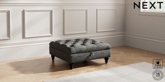 7.2.10 Gosford II Deep Sit Extra Large Storage Footstool Boucle Weave Easy Clean Charcoal Grey Low Turned - Dark | Made Click here to use our website with more accessibility support, for example screen readers