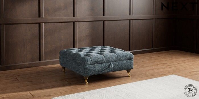 7.2.10 Gosford II Deep Sit Extra Large Storage Footstool Chunky Chenille Dark Navy Blue Castor - Mid | Made Click here to use our website with more accessibility support, for example screen readers
