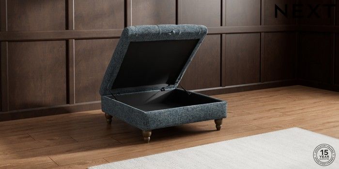 7.2.10 Gosford II Deep Sit Extra Large Storage Footstool Chunky Chenille Dark Navy Blue Low Turned - Mid | Made Click here to use our website with more accessibility support, for example screen readers