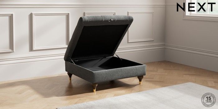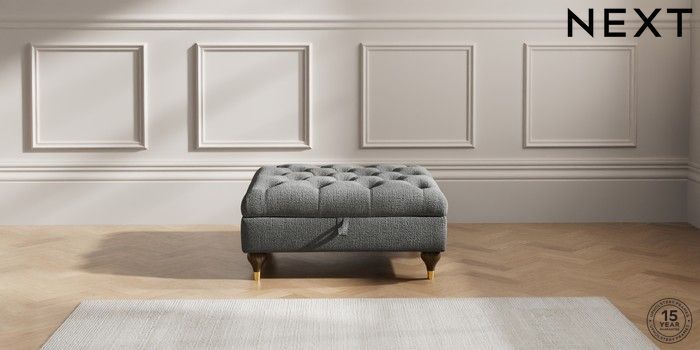 7.2.10 Gosford II Deep Sit Extra Large Storage Footstool Chunky Texture Dark Grey Modern Turned Metal Cap - Mid | Made Click here to use our website with more accessibility support, for example screen readers