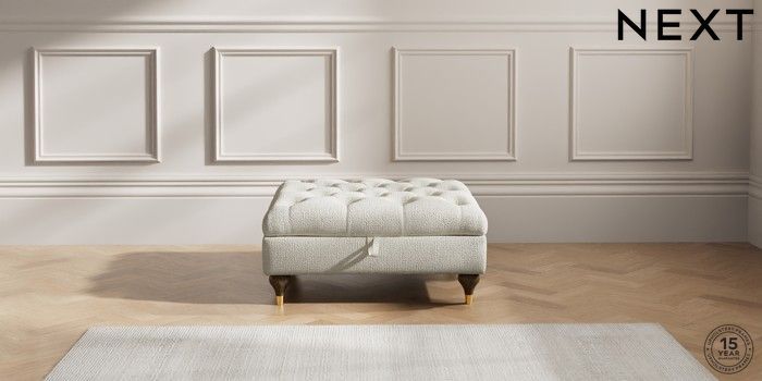 7.2.10 Gosford II Deep Sit Extra Large Storage Footstool Chunky Texture Oyster Modern Turned Metal Cap - Mid | Made Click here to use our website with more accessibility support, for example screen readers