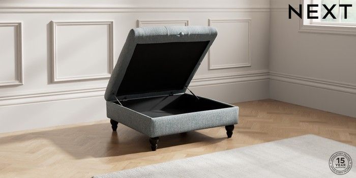 7.2.10 Gosford II Deep Sit Extra Large Storage Footstool Chunky Weave Mid Blue Low Turned - Dark | Made Click here to use our website with more accessibility support, for example screen readers
