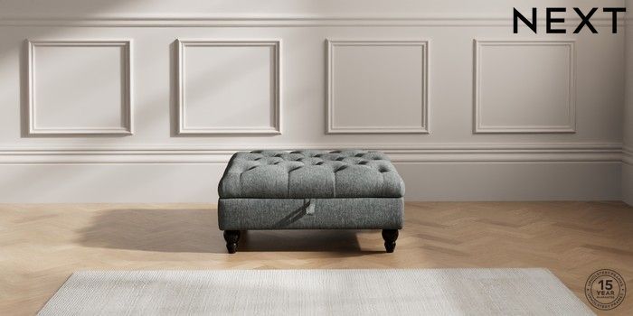 7.2.10 Gosford II Deep Sit Extra Large Storage Footstool Cotswold Chenille Dark Grey Low Turned - Dark | Made Click here to use our website with more accessibility support, for example screen readers