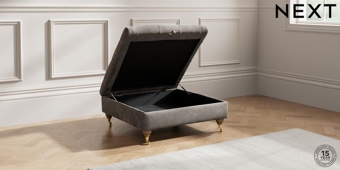 7.2.10 Gosford II Deep Sit Extra Large Storage Footstool Distressed Velour French Grey Castor - Light | Made Click here to use our website with more accessibility support, for example screen readers