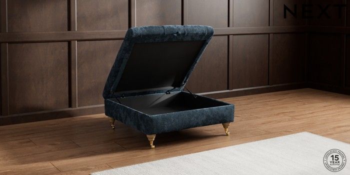 7.2.10 Gosford II Deep Sit Extra Large Storage Footstool Distressed Velour Midnight Blue Castor - Light | Made Click here to use our website with more accessibility support, for example screen readers