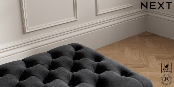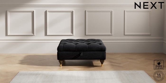 7.2.10 Gosford II Deep Sit Extra Large Storage Footstool Fine Chenille Easy Clean Black Modern Turned Metal Cap - Mid | Made Click here to use our website with more accessibility support, for example screen readers