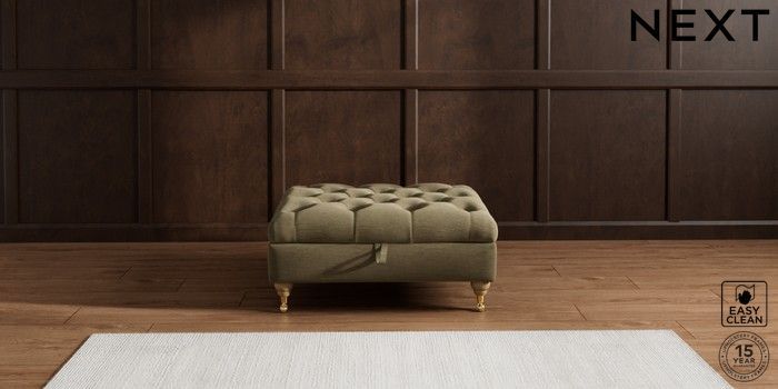 7.2.10 Gosford II Deep Sit Extra Large Storage Footstool Fine Chenille Easy Clean Dark Moss Green Castor - Light | Made Click here to use our website with more accessibility support, for example screen readers