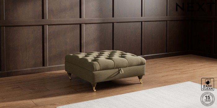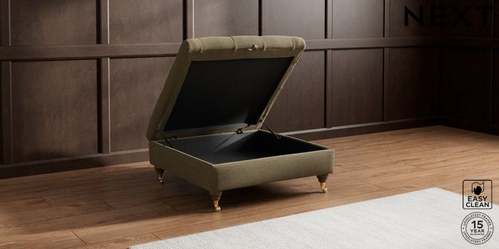 7.2.10 Gosford II Deep Sit Extra Large Storage Footstool Fine Chenille Easy Clean Dark Moss Green Castor - Mid | Made Click here to use our website with more accessibility support, for example screen readers