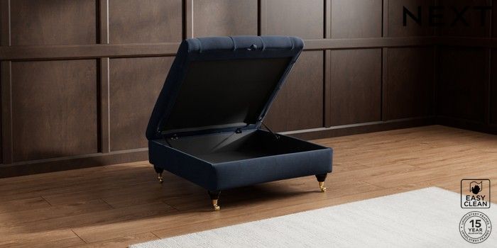 7.2.10 Gosford II Deep Sit Extra Large Storage Footstool Fine Chenille Easy Clean Dark Navy Blue Castor - Dark | Made Click here to use our website with more accessibility support, for example screen readers