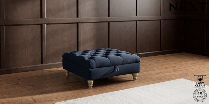 7.2.10 Gosford II Deep Sit Extra Large Storage Footstool Fine Chenille Easy Clean Dark Navy Blue Low Turned - Light | Made Click here to use our website with more accessibility support, for example screen readers