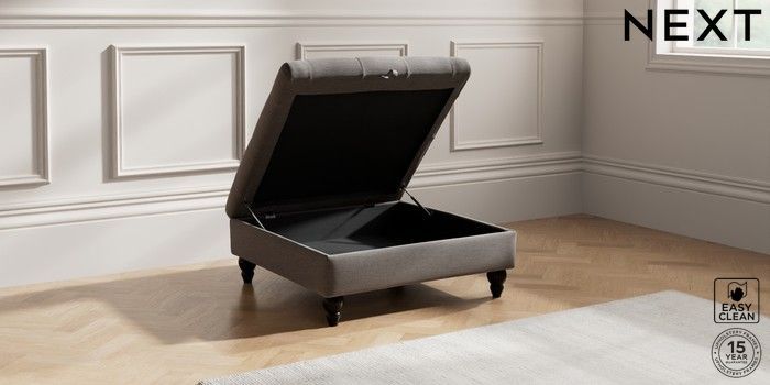 7.2.10 Gosford II Deep Sit Extra Large Storage Footstool Fine Chenille Easy Clean Dark Smoke Grey Low Turned - Dark | Made Click here to use our website with more accessibility support, for example screen readers