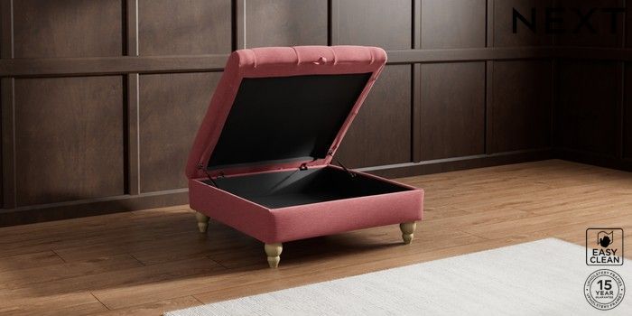 7.2.10 Gosford II Deep Sit Extra Large Storage Footstool Fine Chenille Easy Clean Mid Pink Low Turned - Light | Made Click here to use our website with more accessibility support, for example screen readers