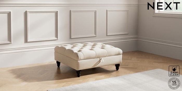 7.2.10 Gosford II Deep Sit Extra Large Storage Footstool Fine Chenille Easy Clean Oyster Low Turned - Dark | Made Click here to use our website with more accessibility support, for example screen readers
